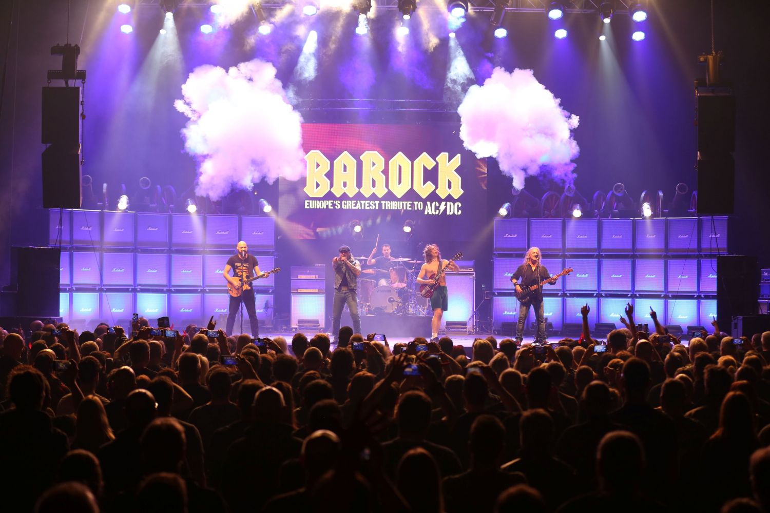 BAROCK haben die Mega-Hells-Bell, Kanonen, Pyro-Technik und 24 Marshall-Boxen dabei, sie bringen den kraftvollen Sound des Originals mit maximaler Power und Exaktheit auf die Bühne und festigen ihren Ausnahmestatus als beste AC/DC-Interpreten.